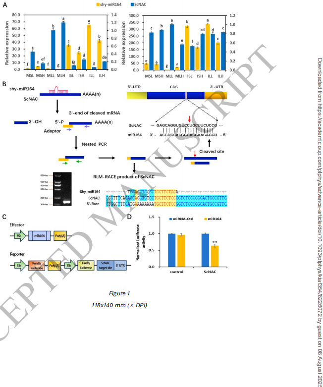 shy-miR164和ScNAC在甘蔗中呈现互逆调控关系