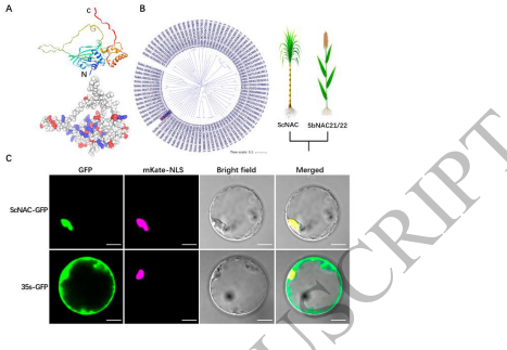 ScNAC蛋白含有典型的NAM结构域,系统发育分析显示其与高粱SbNAC21/22聚为一类