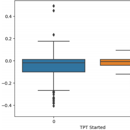TPT非启动者表现出更广泛的效应分布(IQR:-0.1~0.1),而接受TPT者效应更集中(IQR:-0.05~0.05)。WHO分期和CD4分层分析显示临床严重程度与效应大小无显著关联。