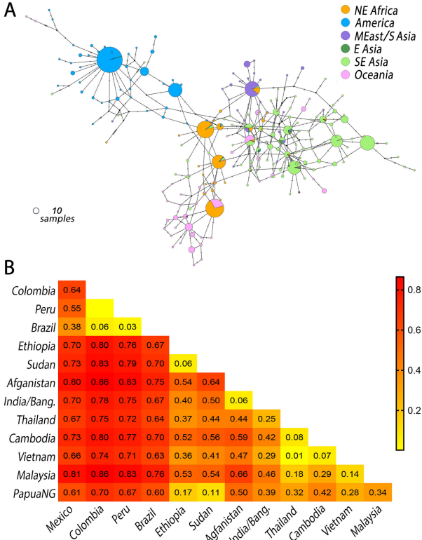 美国国立卫生研究院(NIH)的Alvaro Molina-Cruz和Carolina Barillas-Mury领衔的国际研究团队在《Nature Communications》发表了关于Pv47全球遗传多样性的重要研究成果。研究人员收集了全球794个Pv47基因序列,采用群体遗传学分析结合功能实验,首次系统揭示了Pv47的进化特征及其在媒介适应性中的关键作用。