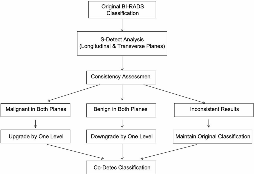 这项研究开创性地证实了AI辅助诊断系统在乳腺小病灶鉴别中的特殊价值。其重要意义在于:① 首次明确S-Detect对≤20mm结节诊断增益更大,填补了该技术尺寸依赖性研究的空白;② 提出的Co-Detect算法实现"智能纠偏",使4A类结节活检率降低59.3%;③ 为临床建立"医师主导-AI辅助"的新型诊断模式提供循证依据。未来需在更多病理类型和更大样本中验证该技术的普适性,但其现有成果已为精准医疗时代下的乳腺疾病诊疗树立了新标杆。
