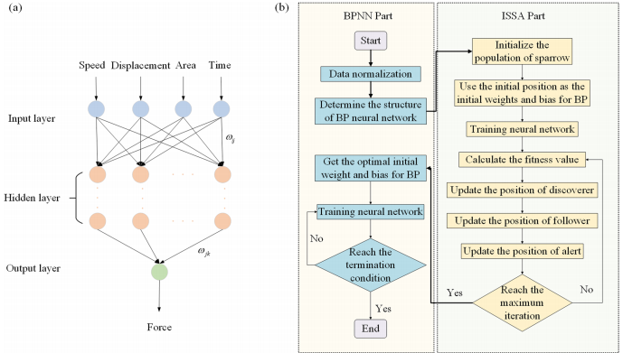 研究采用SHIMADZU EZ-LX万能试验机进行猪肾组织压缩实验,通过单因素方差分析(ANOVA)验证数据可重复性。ISSA-BPNN模型构建包含数据归一化、网络拓扑确定(4-9-1结构)、ISSA参数初始化(种群数30、迭代5次)等步骤,通过RMSE、MSE、MAE、SSE和R2五项指标评估性能。