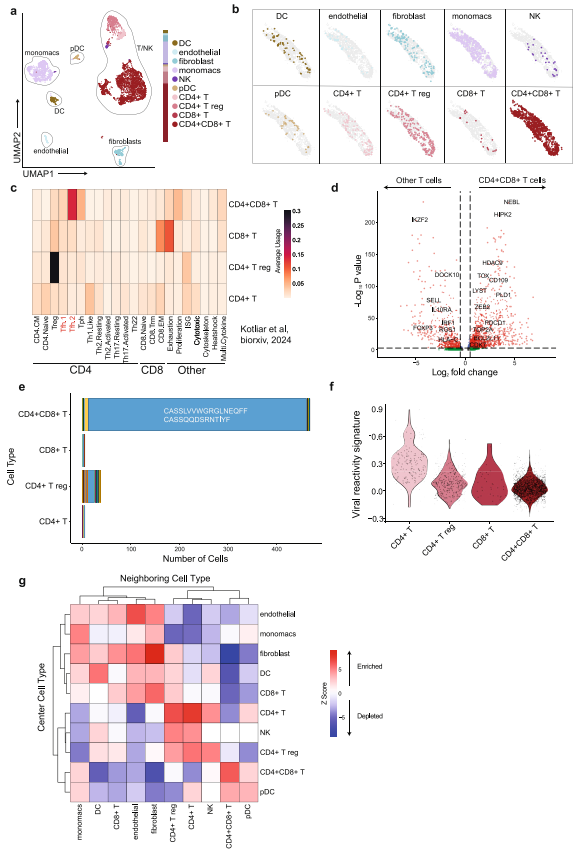 Dana-Farber癌症研究所的研究团队在《Nature Communications》发表了一项突破性研究。他们发现一例接受axi-cel治疗的DLBCL患者,在COVID-19感染期间出现高度FDG摄取的颈部淋巴结肿大。常规病理检查显示CD4+CD8+双阳性T细胞群体表达TFH标志物(BCL-6、PD-1等),符合TCL诊断标准。但令人惊讶的是,这个Ki-67达40-50%的克隆性群体在6周后自发消退。为破解这一矛盾现象,研究者采用三大关键技术:全基因组测序排除了CAR转基因整合(检测灵敏度达3.4%细胞频率);5'端单核空间转录组(Slide-tags)技术首次实现TCR可变区捕获与空间定位;以及T细胞功能程序量化算法(TCAT)解析转录特征。