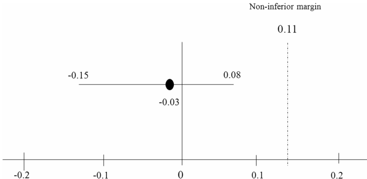 HSRs发生率:10 mg组发生率为9.8%(6/61),20 mg组为13.1%(8/61),风险差异-0.03(95%CI: -0.15~0.08),上界未超过0.11的非劣效性阈值。