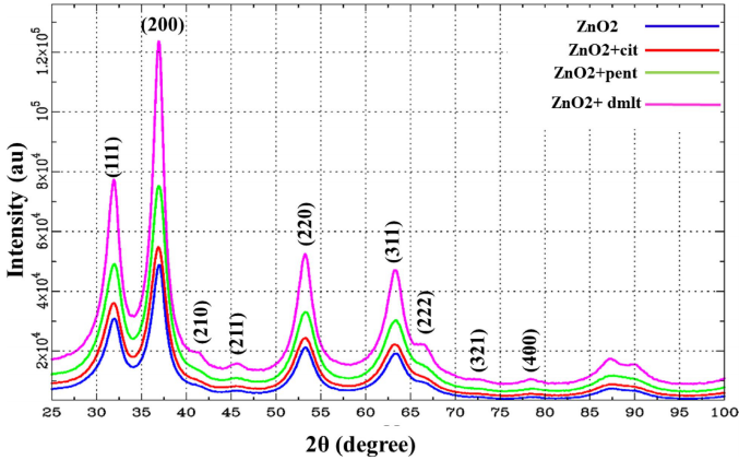 UV-Vis显示cit修饰ZnO2在347-349 nm处出现宽吸收峰。Mn、Co掺杂引发红移,带隙从3.07 eV分别降至2.89 eV和2.79 eV,这种Burstein-Moss效应源于掺杂引入的费米能级附近新态。