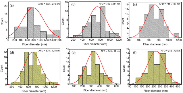SEM显示所有纳米纤维均呈无串珠结构,其中SCN:MFA直径最小(248±42 nm),比HCN:MFA(675±128 nm)减少63%。小直径伴随更高比表面积,为快速药物释放奠定结构基础。
