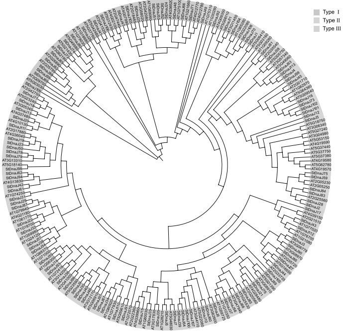 全基因组共鉴定113个StDnaJ基因,根据结构特征分为三类:20个Type I含J-domain、G/F-domain和锌指结构域;22个Type II含J-domain加G/F或锌指结构域;71个Type III仅含J-domain。蛋白长度差异显著(99-991 aa),等电点分布广泛(4.59-10.52),亚细胞定位预测显示多数定位于叶绿体或细胞质。