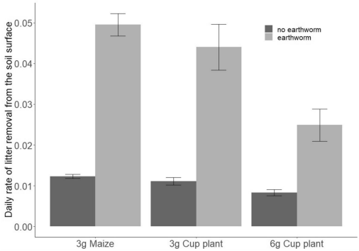 蚯蚓使玉米和杯菊凋落物表面移除率分别提高5倍和3倍(