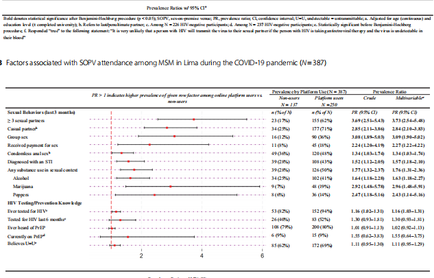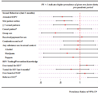 研究方法上,团队运用REDCap电子问卷采集数据,主要技术手段包括:1) 标准化问卷评估过去3个月的性行为(SOPV访问、在线平台使用、伴侣数量等);2) 稳健Poisson回归模型分析疫情前后差异;3) Benjamini-Hochberg法校正多重比较;4) 新增疫情期间专项模块评估服务中断情况和健康感知变化。