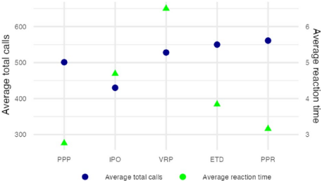 最具启示性的发现出现在VRP阶段,此时呼叫量激增(平均523.1次/天)伴随反应时间骤增至6.5分钟。而后期ETD阶段虽呼叫量更高(550.9次/天),反应时间却降至3.8分钟,证明系统通过优化调度实现了效能提升。所有阶段中,PPP阶段表现最优(平均500.7次/天,反应时间2.66分钟)。