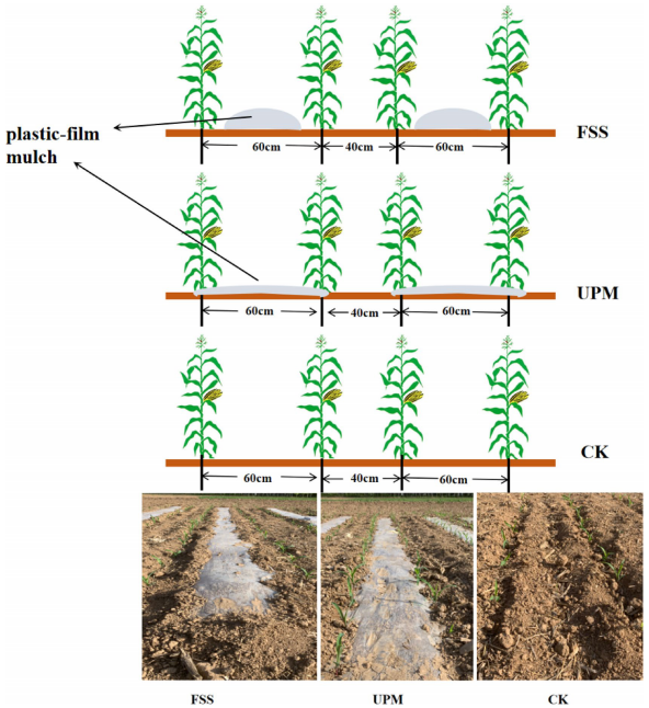 FSS实现14,098 kg·ha-1的产量,较CK增产14.2%。其技术优势在于:1) 60 cm窄幅地膜节省33.6%覆膜成本;2) 免人工"放苗"工序降低劳动投入;3) 综合净收益达3,665 $·ha-1,较UPM提高15.8%。