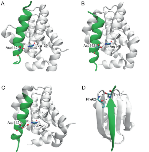 晶体结构分析揭示Bmf通过BH3结构域与Bcl-xL、Bcl-2形成疏水相互作用和盐桥(如Asp142-Arg139),而与Mcl-1仅通过水介导氢键结合,这解释了其亲和力差异。