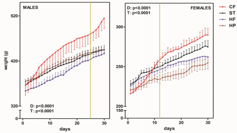 研究人员采用多组同源饮食干预策略:以标准饲料(ST)为基础,构建高脂(HF,37%脂质)、高蛋白(HP,41%蛋白)及自助餐式(CF)饮食模型,持续喂养雌雄Wistar大鼠30天。通过动态监测体重变化、血浆E2/T水平、糖脂代谢指标,结合组织乳酸脱氢酶(LDH)活性检测和全身成分分析,首次建立了碳片段流-激素调控-能量分配的定量关系模型。关键技术包括:① 基于BW0.75的异速生长校正模型;② 氨基酸碳骨架代谢路径分类系统(表1);③ 门静脉首过效应模拟算法;④ 同位素示踪的3C→2C转化通量测定。
