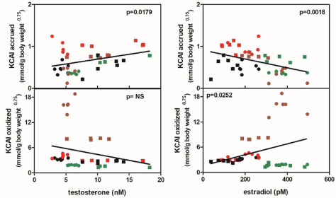 如图9所示,T通过mTOR通路促进氮沉积,而E2则激活PDH激酶4(PDK4)使3C→2C转化效率提升2.1倍。这种"雌二醇-胰岛素轴"的协同作用(图12),解释了女性在同等糖负荷下肝脏脂肪沉积减少31%的现象。