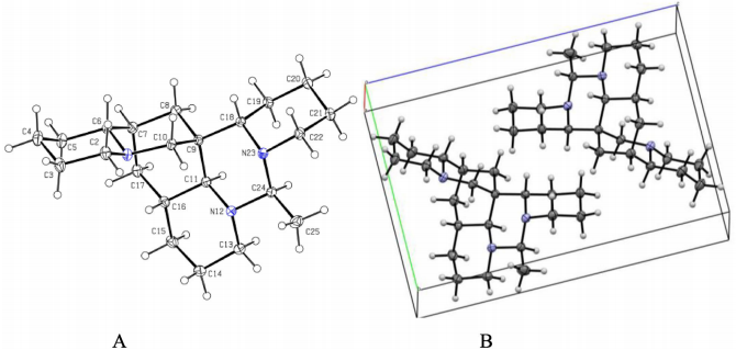 通过HR-ESI-MS和NMR数据,化合物1被鉴定为C22H37N3,其六环骨架通过HMBC相关得以确认,X射线衍射显示其空间群P-1证实为外消旋体。手性分离获得[α]D20 +55.0°(1a)和-55.0°(1b)的对映体,DFT计算验证构型。化合物3的绝对构型(6R,7R,9S,11S,16R,18R,24R)通过Flack参数0.04(6)确定。