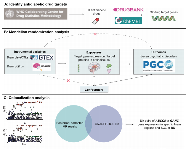 抗糖尿病药物靶点与精神疾病的遗传关联研究:GANC和ABCC8在双相障碍和精神分裂症中的新机制