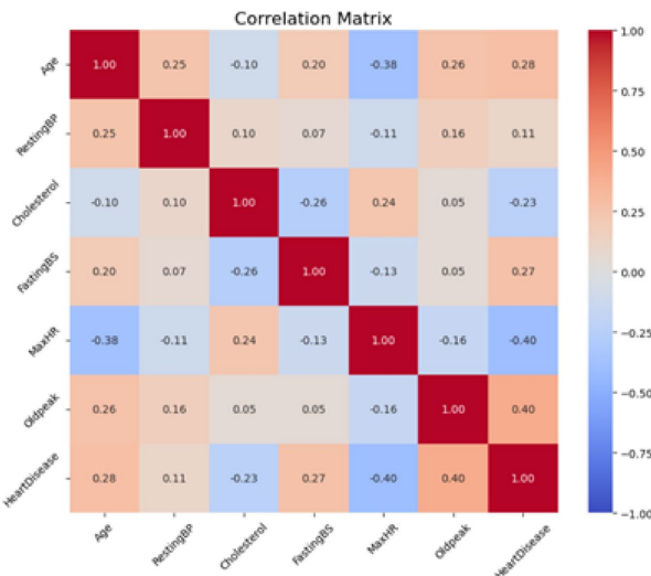 相关性分析发现,ST段压低值(Oldpeak)与CVD呈最强正相关(r=0.40),而最大心率(MaxHR)则呈显著负相关(r=-0.40)。