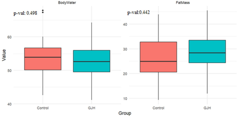 ANCOVA调整后显示,GJH组矿物质百分比显著低于对照组(4.81±0.77% vs 5.23±0.69%,p=0.020)。这种差异可能源于关节稳定性下降导致的骨负荷减少,但研究者强调需排除测量时 hydration status(水合状态)的干扰。