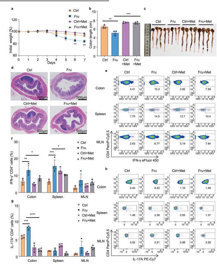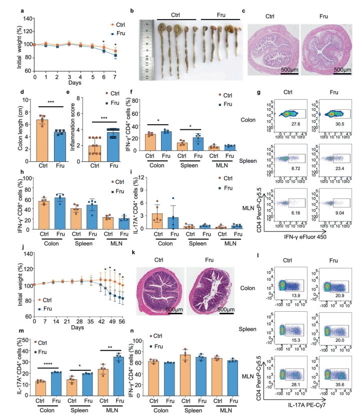 高果糖饮食通过增强Th1和Th17细胞介导的免疫加剧炎症性肠病