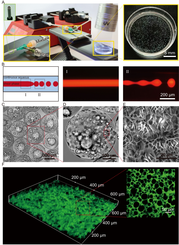 研究人员通过创新的全水相微流控技术,成功制备出负载甘露寡糖(MOS)的多孔GelMA微凝胶。这种微凝胶具有可调控的孔隙结构,当GelMA与PEO体积比从10:1调整为2:1时,孔隙率显著增加。与实心微凝胶相比,多孔结构使细菌吸附能力提升3倍以上,体内滞留时间延长50%。