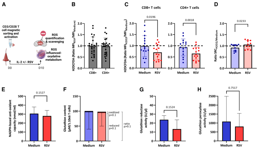 在H2O2刺激实验中,RSV处理组T细胞的ROS清除效率提高2.3倍,且SRC维持能力显著优于对照组。值得注意的是,这种保护作用不依赖NADPH抗氧化系统,而可能与线粒体质量调控相关。