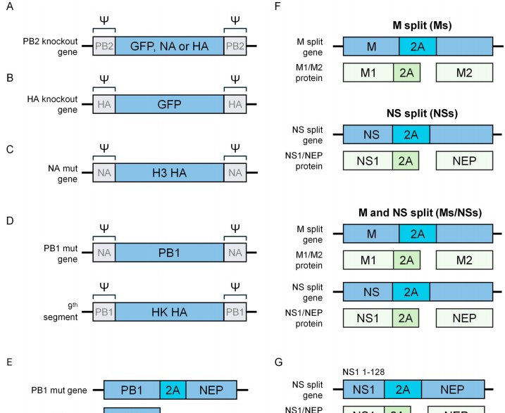 NS1是流感病毒的关键毒力因子,能抑制宿主I型干扰素(IFN)应答。通过反向遗传学技术构建NS1缺失(ΔNS1)或C端截短(如NS1 1-126)的病毒株,可在干扰素缺陷型细胞中高效增殖,而在正常宿主中显著减毒。