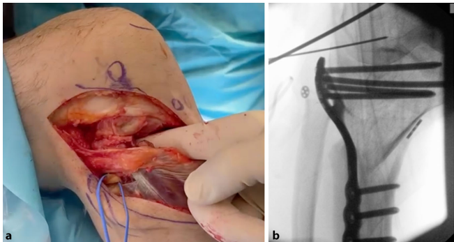 研究详细描述了外侧入路的解剖学要点:在保护腓总神经前提下,通过Gerdy结节松解髂胫束,随后进行腓侧副韧带(LCL)肌腱切断。这一步骤为后续截骨创造了安全操作空间。