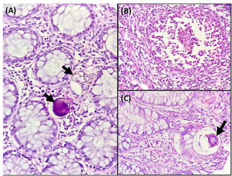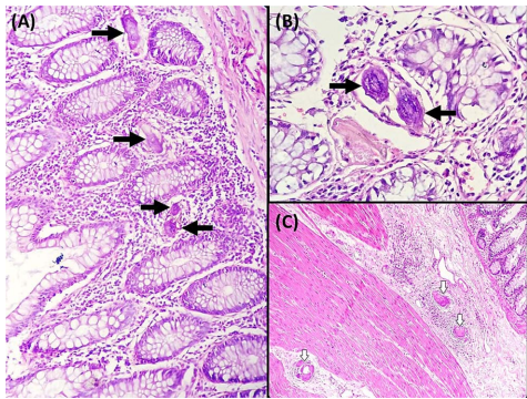病理分析:对30cm长的切除标本进行组织学检查,重点观察黏膜下层和肌层的寄生虫卵沉积