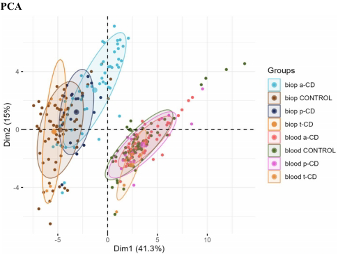 为全面解析CD的分子机制,?sa Torinsson Naluai团队在《BMC Medicine》发表了突破性研究。该研究创新性地整合了72例CD患者(包括活动期、潜在期和治疗后)和73例对照的283份肠道活检及外周血样本,采用全基因组RNA测序技术进行多组学分析。通过limma-voom和edgeR包进行差异表达分析,结合Enrichr通路富集方法,系统绘制了CD不同临床阶段的分子图谱。