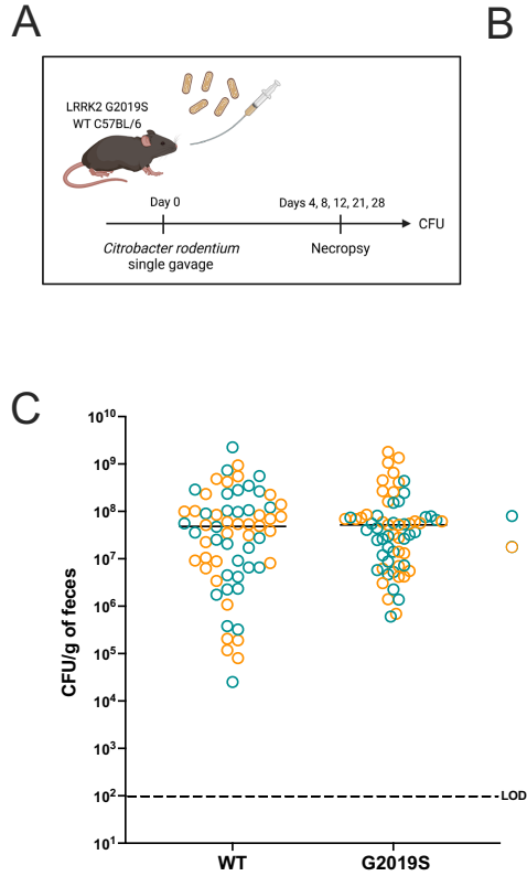 Lrrk2G2019S突变不影响C. rodentium定植或清除