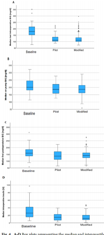 血糖控制效果:改良EIC使CPB期间平均血糖较基线期降低21 mg/dl(188 vs 209 mg/dl,p=0.002),手术结束时血糖从182±49 mg/dl降至123±38 mg/dl(p<0.001)。