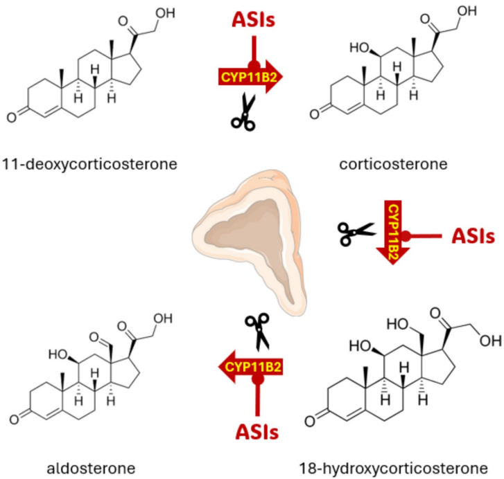 这篇综述系统评价了醛固酮合酶抑制剂(ASIs)在顽固性高血压(RHT)治疗中的药理学特性与临床潜力,重点探讨了baxdrostat、lorundrostat等药物通过选择性抑制CYP11B2(而非CYP11B1)降低血压的机制,强调其对高醛固酮血症亚组患者的显著疗效及个体化治疗策略的重要性。