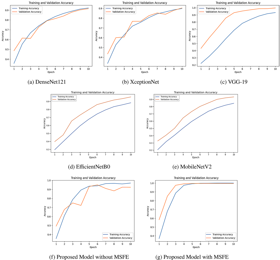 模型性能:MSFE-GallNet-X以99.63%的准确率超越VGG-19(98.89%)和DenseNet121(91.81%),在胆囊壁增厚(various causes of gallbladder wall thickening)与胆囊穿孔(perforation)等易混淆类别中保持100%的F1值。