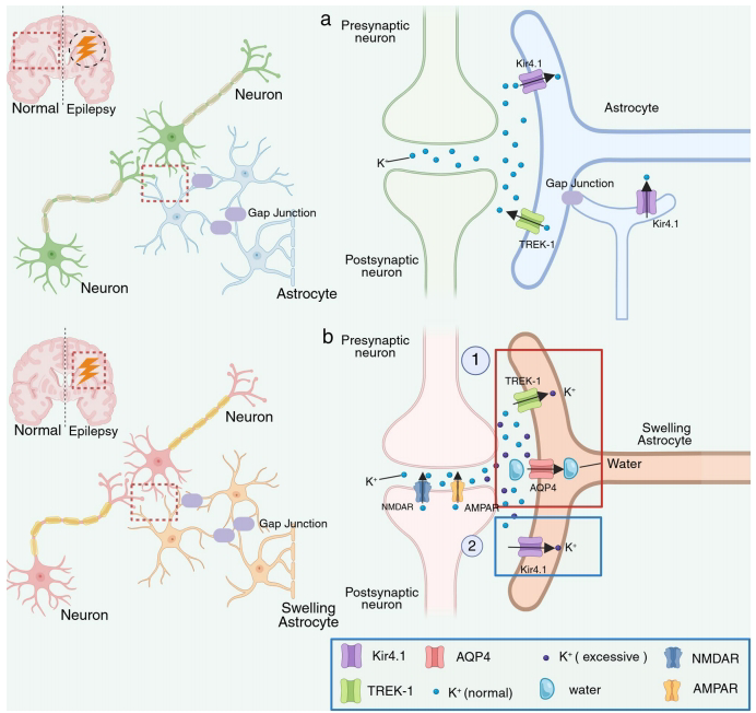 综述:TREK-1与癫痫:星形胶质细胞-神经元相互作用中K+平衡和谷氨酸释放的调控