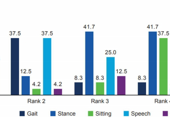在"SCACOMS检测有意义变化的能力"方面,70.8%的患者认为言语项目的稳定性最重要,62.5%选择步态,而仅有25%选择CGI。医疗专业人士则强调不同疾病阶段应关注不同项目:轻度SCA关注步态和CGI,中度关注言语,重度关注坐姿或平衡。