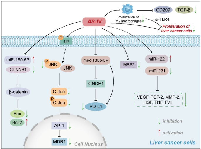 AS-IV通过miR-135b-5p/CNDP1轴降低HCC细胞表面PD-L1表达,改善肿瘤微环境免疫抑制状态。动物实验显示,150mg/kg剂量的AS-IV可使肿瘤组织中CD8+ T细胞浸润增加40%,同时显著抑制M2型巨噬细胞的极化过程。