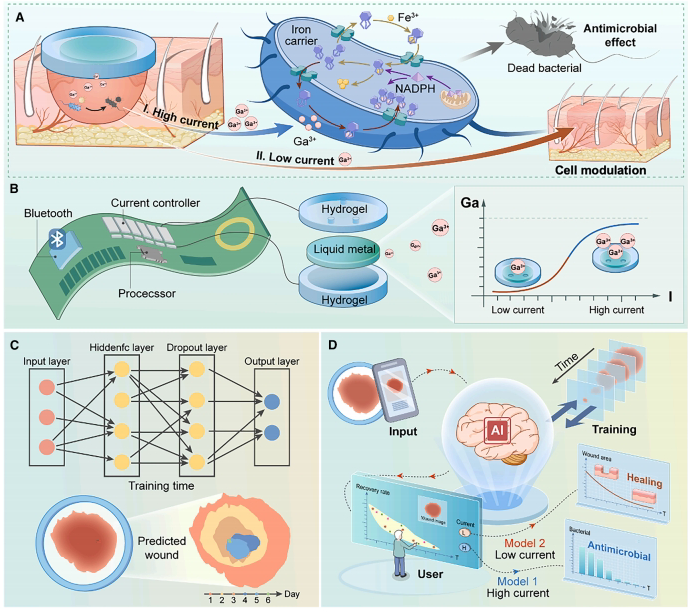 智能反馈生物电子器件促进感染性伤口愈合:基于液态金属与AI协同调控的闭环治疗新策略