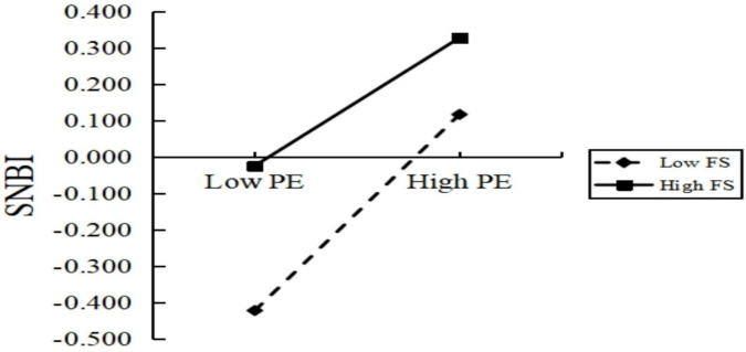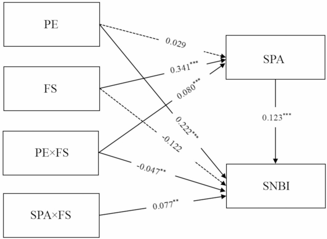 FS增强了SPA对SNBI的预测力(β交互=0.077,p<0.01),高FS组效应值是低FS组的4.3倍