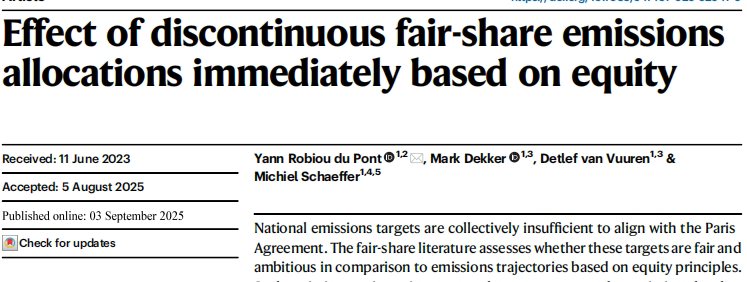 本研究针对《巴黎协定》下国家自主贡献(NDC)公平性评估存在的"祖父效应"问题,创新性提出两种非连续性排放分配方法(Approach 1/2)。通过分离正负排放的差异化分配原则,首次实现基于责任能力原则(CBDR-RC)的即时公平分配,揭示现行NDCs与1.5°C目标的巨大差距,为气候司法裁决和国际气候融资提供量化依据。