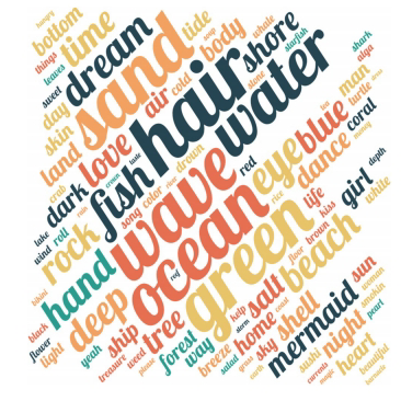 词云分析揭示"hair"(74次)、"wave"(70次)、"mermaid"(29次)构成核心意象群,与西班牙语研究中的"water"、"salt"形成文化差异。盖尔语歌曲《Dúlamán》等非英语作品展现了藻类在民族文化中的独特地位。