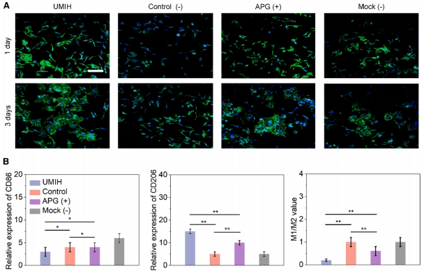 UMIH促进Het-1A食管上皮细胞增殖(72小时达对照组2.1倍),并通过下调CD86 42.7%、上调CD206 68.3%诱导巨噬细胞向M2型极化。抗菌实验显示其对大肠杆菌和金黄色葡萄球菌的抑制率超90%。