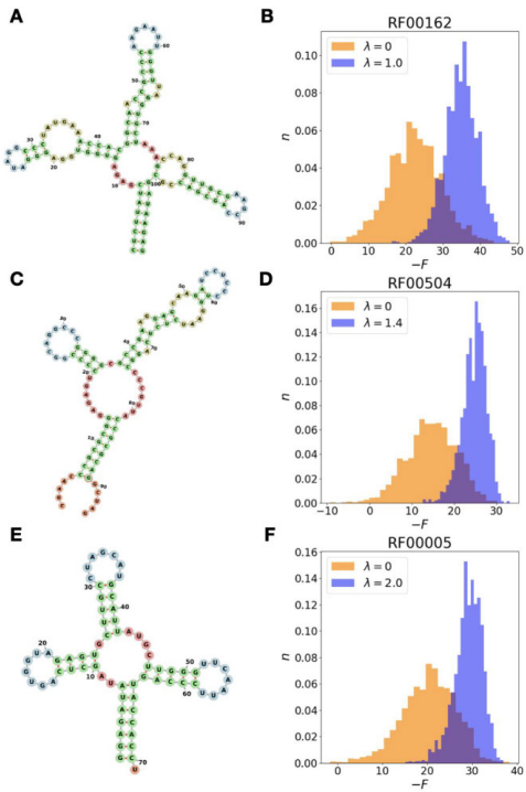 研究创新性地将实验数据转化为修正频率?f,通过公式(10)-(12)实现DCA参数的迭代优化。针对RNA设计,采用eaDCA(edge activation DCA)提升效率;蛋白质案例则使用adabmDCA(adaptive Boltzmann Machine DCA)的GPU加速实现。