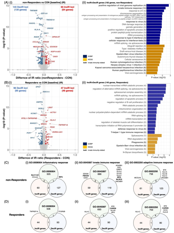 抑郁症是全球致残率最高的精神疾病之一,其中约1/3患者对现有疗法无响应,被称为难治性抑郁症(TRD)。近年研究发现,慢性炎症状态与TRD密切相关,但具体分子机制尚未阐明。尤其令人困惑的是,为何部分TRD患者对新型速效抗抑郁药氯胺酮(ketamine)仍无响应?传统基因差异表达分析(DEG)未能揭示响应差异的根源,这促使研究者将目光转向基因调控的新维度——内含子滞留(Intron Retention, IR)。
