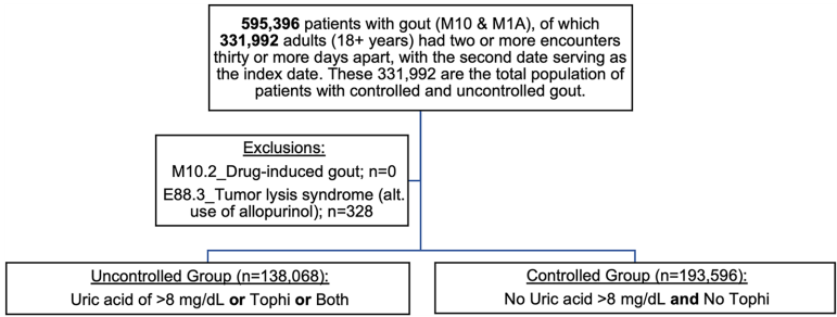 研究采用的关键技术方法包括:1)基于ICD-10编码(M10/M1A)的患者识别与队列构建;2)利用VA全国性EHR系统获取 demographics、临床诊疗、实验室检测(sUA)及药学数据;3)多变量逻辑回归模型分析医疗资源使用与健康结局的关联因素;4)统计调整涵盖年龄、性别、肾脏疾病、糖尿病并发症等协变量。