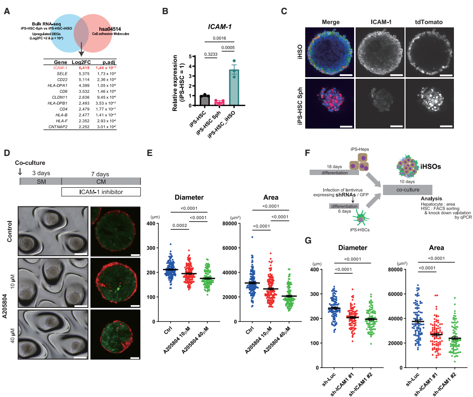 ICAM-1 in HSCs mediates cellular interactions within the iHSOs