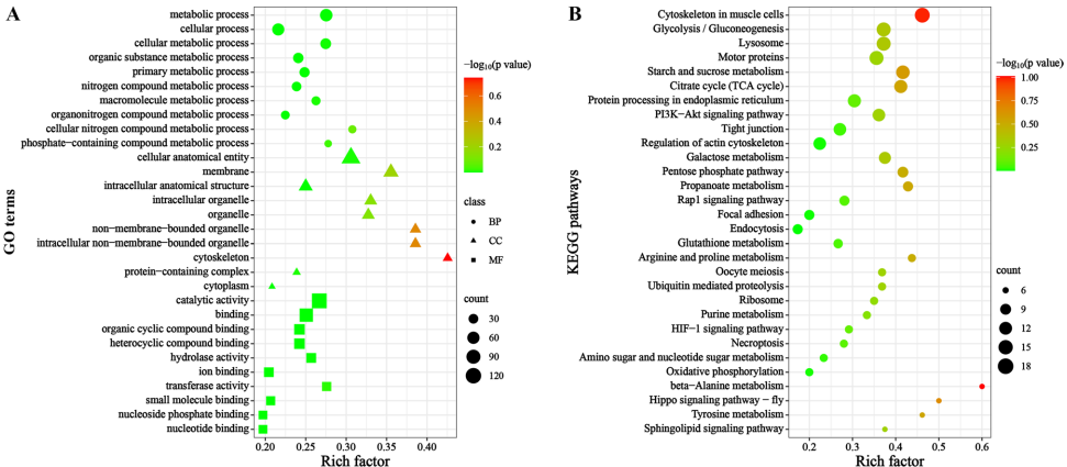 亚细胞定位预测显示22.39%的ES蛋白定位于细胞质,17.01%为胞外蛋白,提示这些蛋白可能直接参与宿主互作。结构域分析发现转运甲状腺素蛋白样家族结构域(42个蛋白)和主要精子蛋白(MSP)结构域(35个蛋白)最为富集。GO功能注释显示蛋白主要参与催化活性和结合功能,KEGG通路分析显著富集于PI3K-Akt、Rap1、MAPK等信号通路,这些通路与免疫调节和细胞存活密切相关。