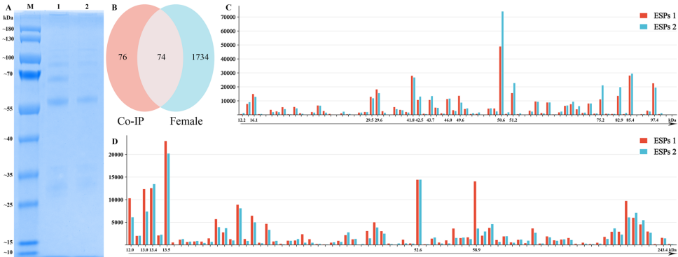 为了解决这一科学问题,Zhou等研究人员利用高通量蛋白质组学技术,首次对雌雄成虫的ES蛋白进行了全面解析。该研究采用先进的Orbitrap Astral质谱仪,结合窄窗口数据非依赖采集(nDIA)技术,实现了对低丰度蛋白的高灵敏度检测。通过比较蛋白质组学分析,不仅揭示了性别特异性表达模式,还通过共免疫沉淀(Co-IP)技术筛选出与宿主抗体相互作用的关键抗原蛋白,为开发新型诊断方法和疫苗候选靶点提供了重要数据支持。这项研究成果发表于《BMC Genomics》,为寄生虫与宿主互作研究提供了新的视角。