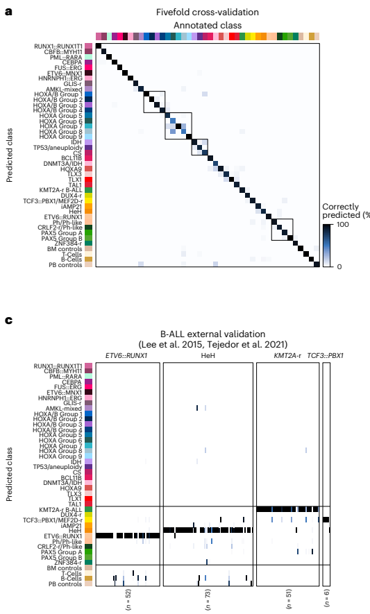 扩展验证中,15例多重测序样本的10例高置信度预测全部与病理结果吻合。健康供体和骨髓增生异常综合征(MDS)样本分析表明,MARLIN能区分MDS与急性白血病,但也提示了应用限制——不应将分类器用于未达到急性白血病标准诊断的病例。