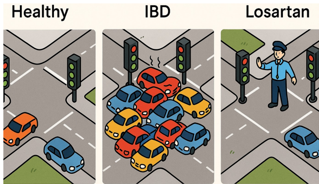 正如研究者所作的生动比喻:如果将RAS通路视为调节肠道健康的交通控制系统,那么在某些病理状态下,Ang II/AT1信号就像是被卡在"通行"状态的信号灯,不断放行破坏性的炎症和纤维化"车流"。而氯沙坦就像一位高效的交通管理员,精准地将这个故障信号灯切换为"停止"状态,从而疏通肠道环境,促进组织修复并防止纤维化"交通拥堵"的再次发生。