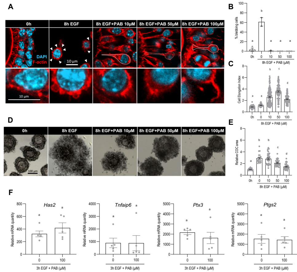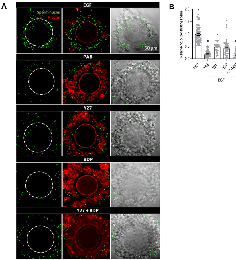 本研究针对哺乳动物排卵过程中卵丘细胞扩散机制不清的问题,通过体内外实验证实:EGF受体信号通过激活RhoA-ROCK/MRCK通路(非ERK依赖)磷酸化非肌肉肌球蛋白II(NMII),驱动卵丘细胞在透明质酸基质中迁移。该过程与ERK介导的基质生成协同作用,共同促进卵丘扩张,为精子穿透提供通道,对理解生育障碍和开发新型避孕策略具有重要意义。